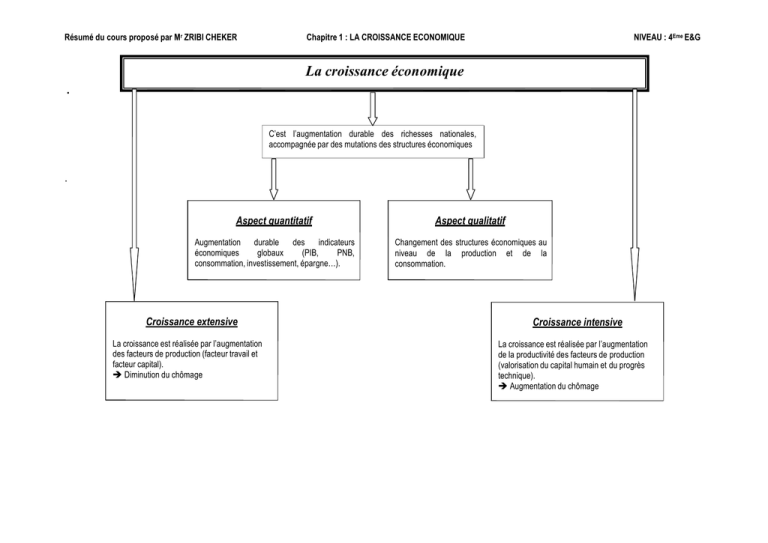 Chapitre 1 : LA CROISSANCE ECONOMIQUE