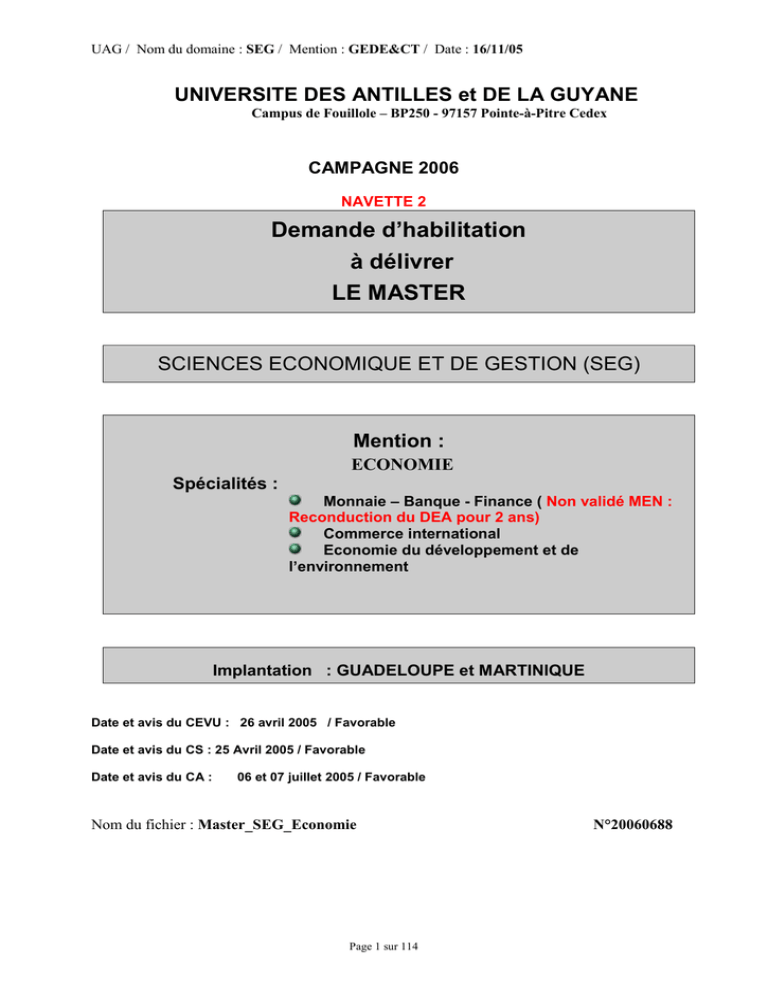 UAG / Nom du domaine : SEG / Mention : GEDE&CT / Date : 16/11/05