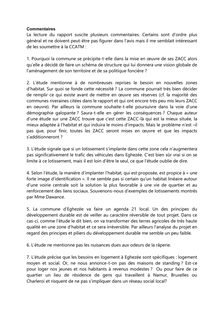 8. L’étude conclut que l’habitat est la seule affectation possible pour cette ZACC. Les