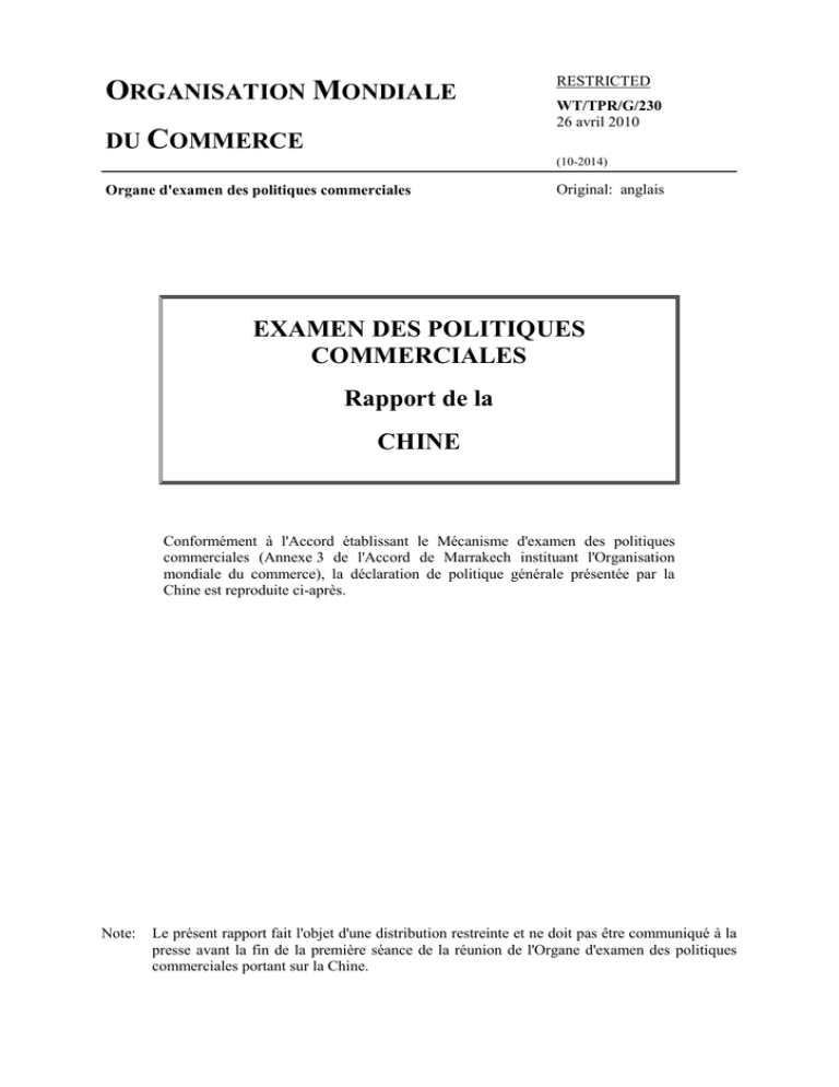 Chine WT/TPR/G/230