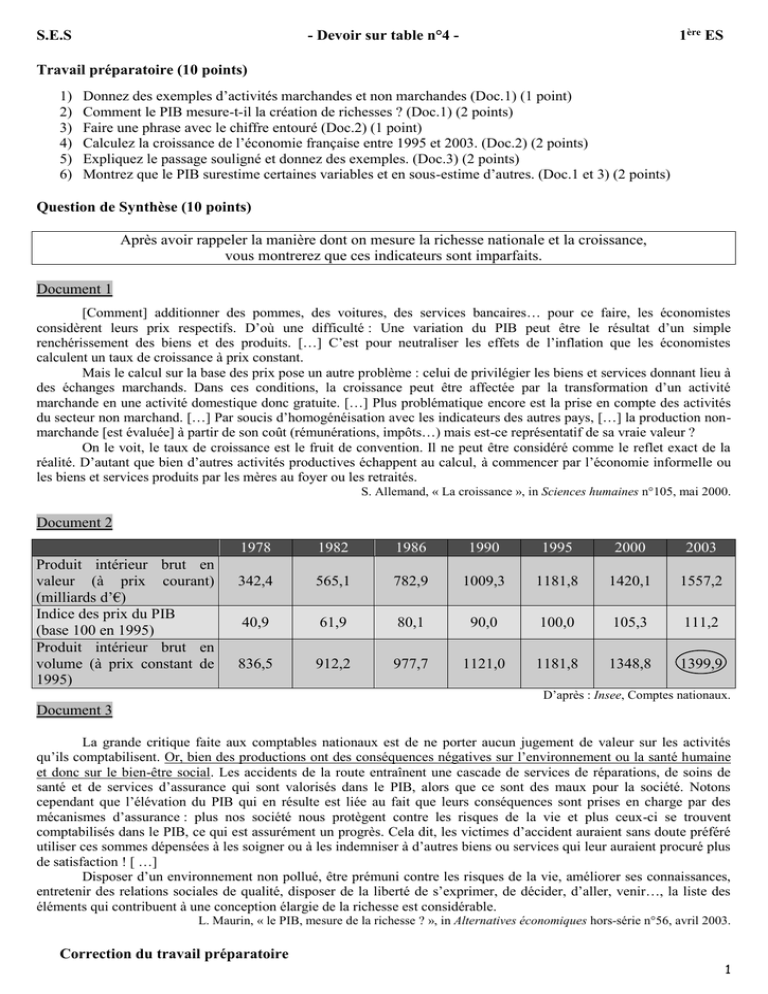 3) En 2003, en France, les richesses créées par les unités résidentes en volume (PIB) s’élevaient à 1 399