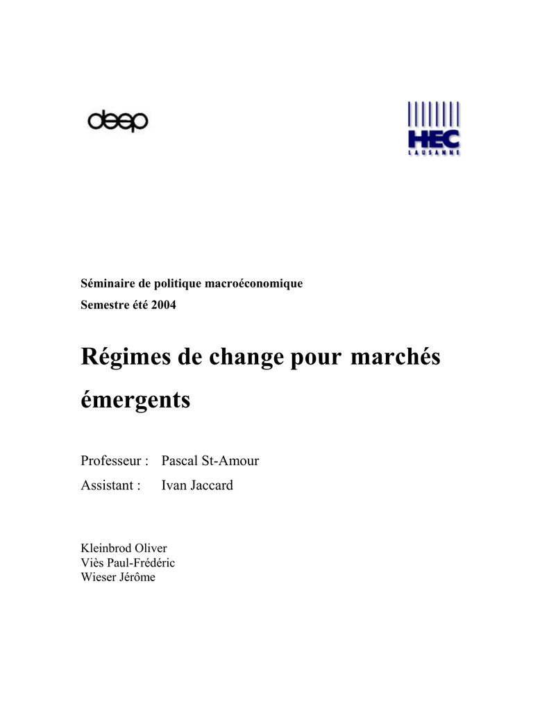 cette manière, il sera possible de répondre à la question du régime de change approprié