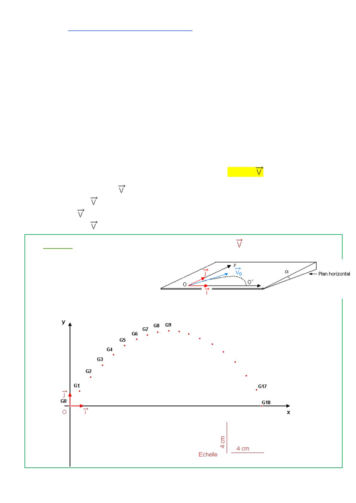 l'objet est soumise à l'attraction gravitationnelle de la Terre, représentée par le vecteur force .