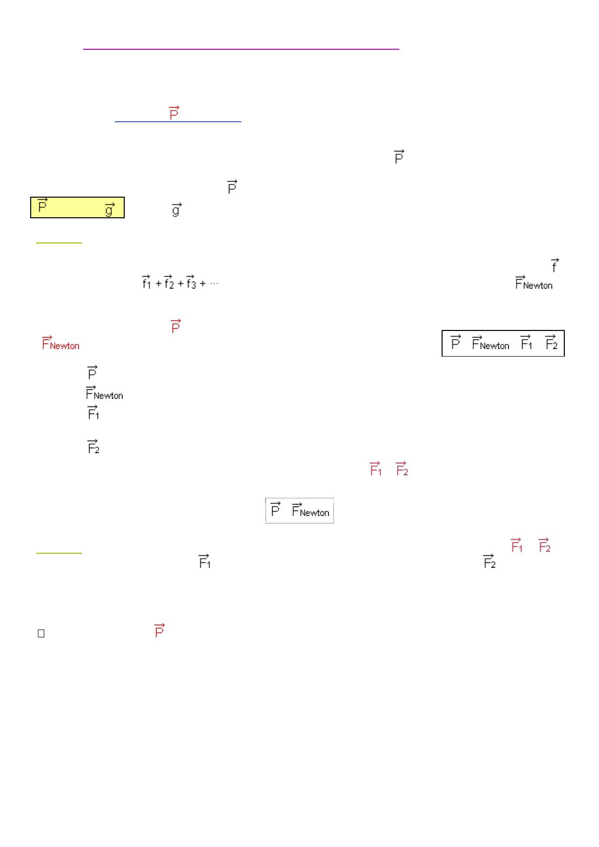 qu'exerce la Terre sur cet objet ? En toute rigueur, il faudrait écrire : = + +
