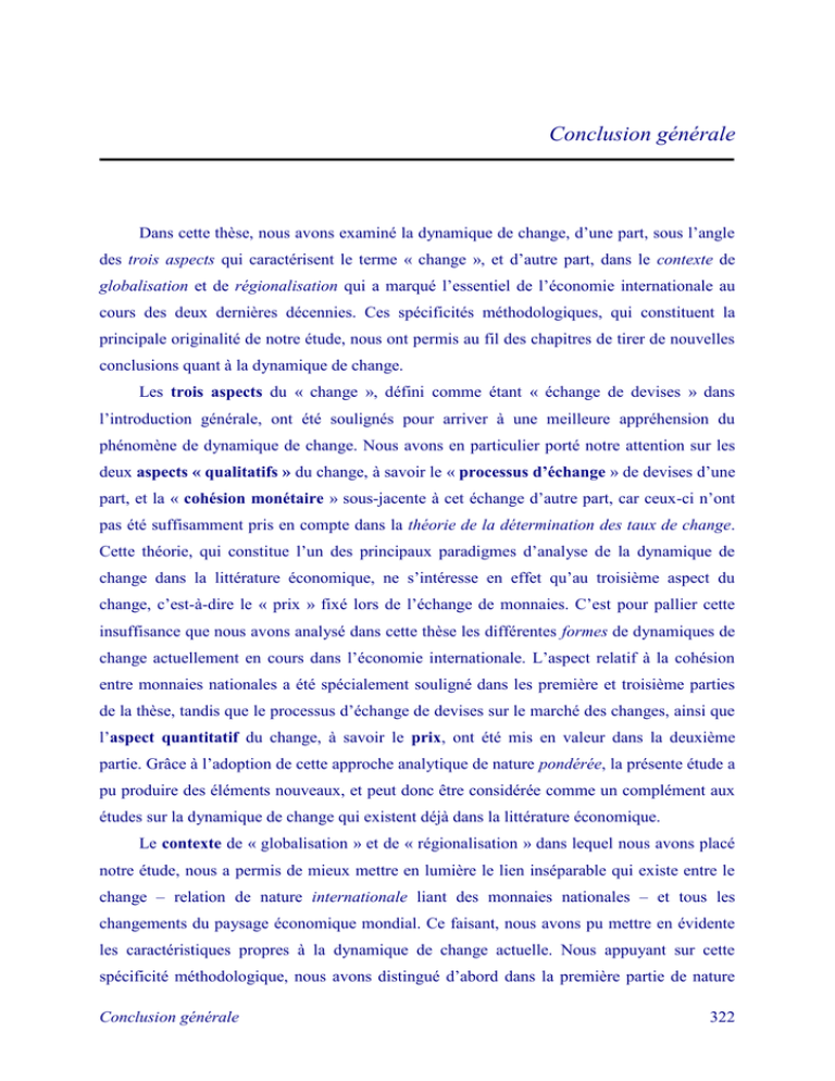 régionalisation et de globalisation dans une analyse de la dynamique de change au sein de