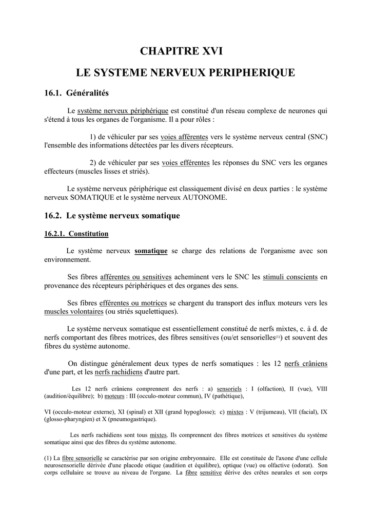 somatique (nerfs mixtes) soit indépendamment, le long des vaisseaux sanguins.
