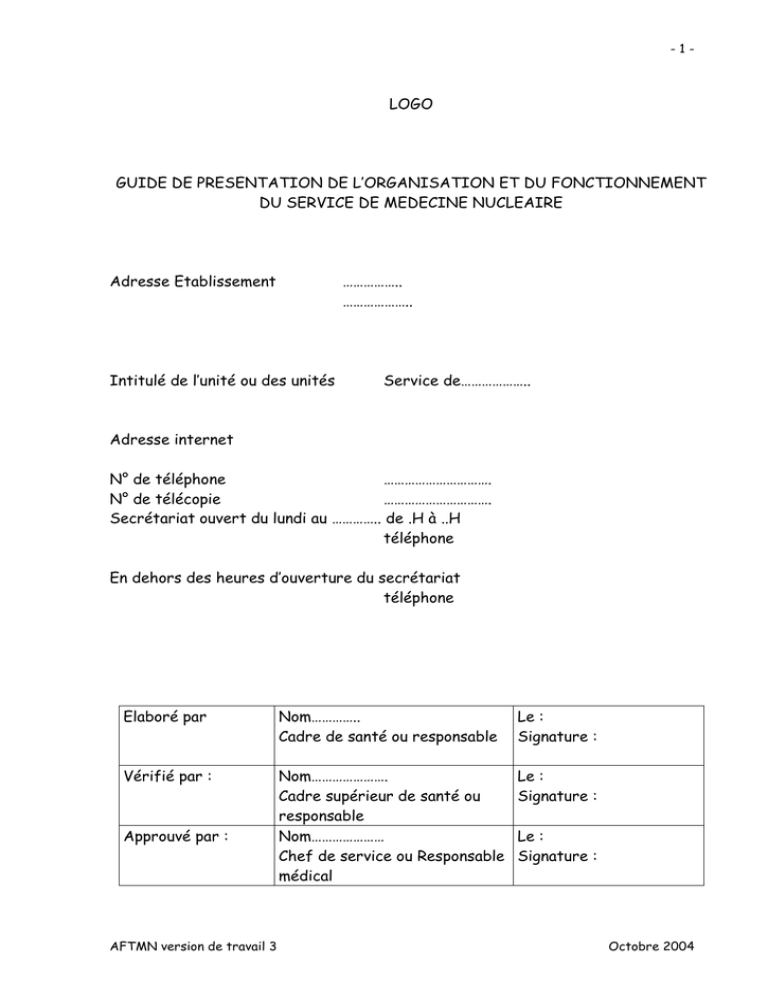 Laboratoire de Médecine Nucléaire – exemple : ............................................................................................... 13