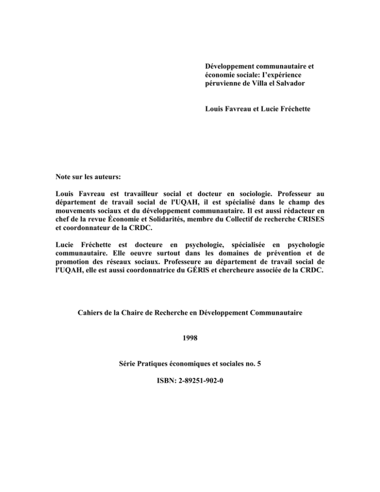 Symposium international sur l'économie solidaire de Lima (Favreau et Lachapelle, 1997).