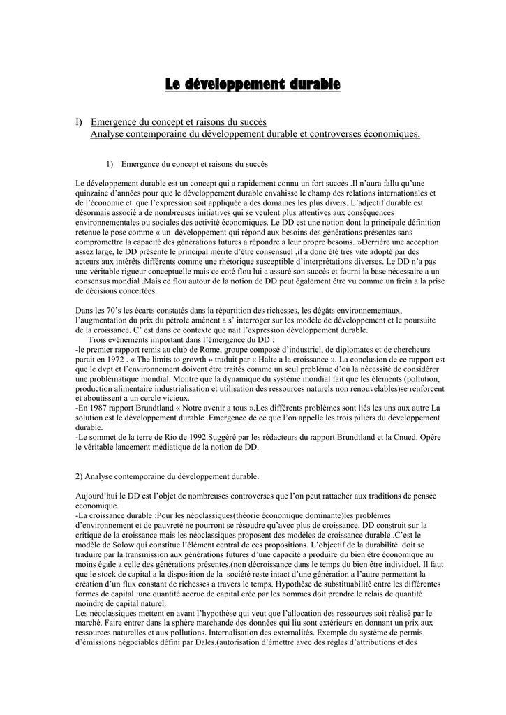 durable. L’adoption à cette occasion de l’agenda 21 comprenant 2500 recommandations à appliquer au plus vite