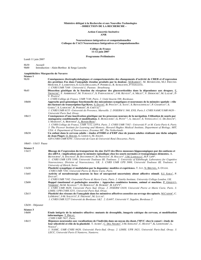 1. INCM CNRS UMR 6193, Université de la Méditerranée, Marseille. 2. CNRS UMR 5543, Université V. Segalen,
