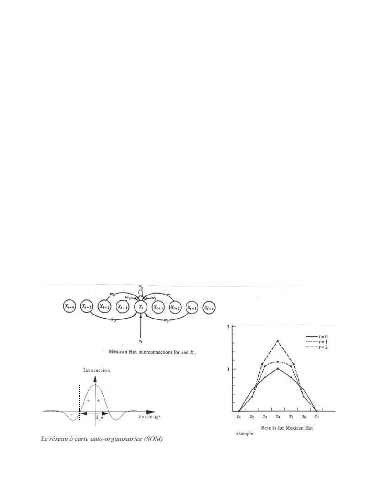 Le chapeau mexicain et le SOM utilisent un apprentissage non supervisé, le LVQ