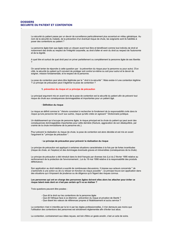 Dossiers Sécurité du patient et contention La sécurité du patient
