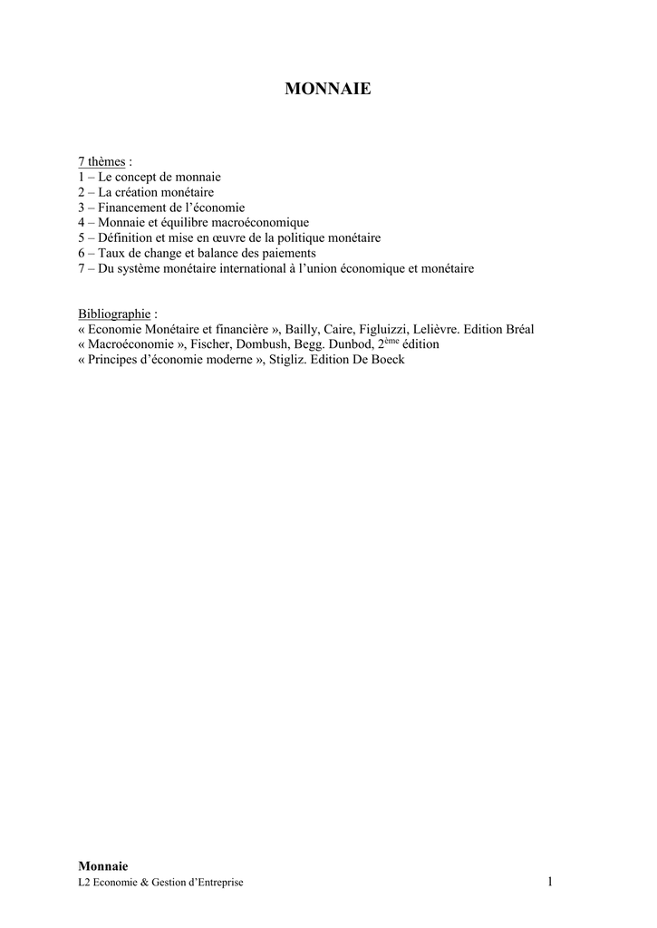 La monnaie définit l’ensemble des moyens de paiements généralement acceptés.