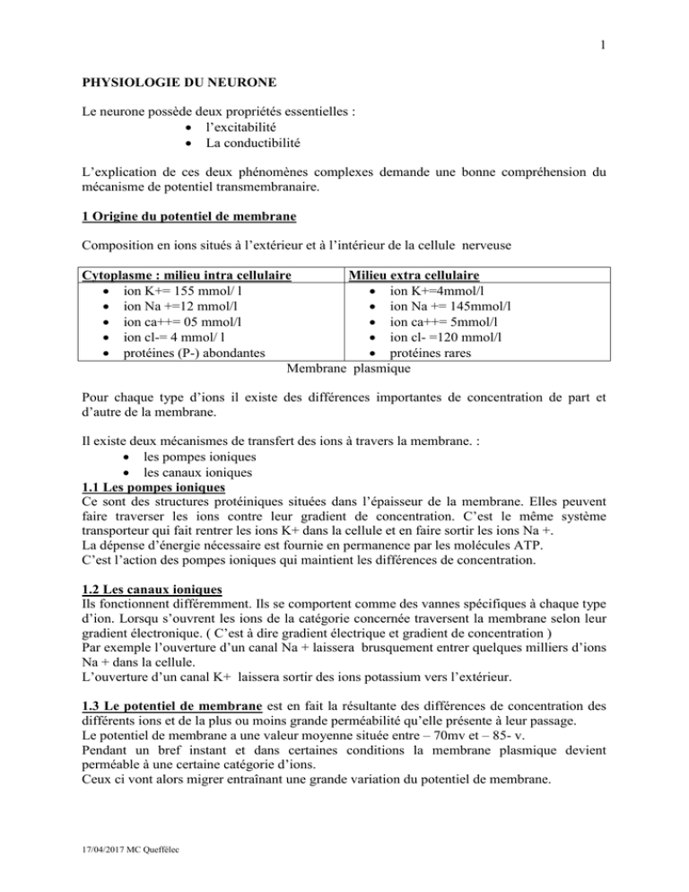 Les propriétés du potentiel d’action