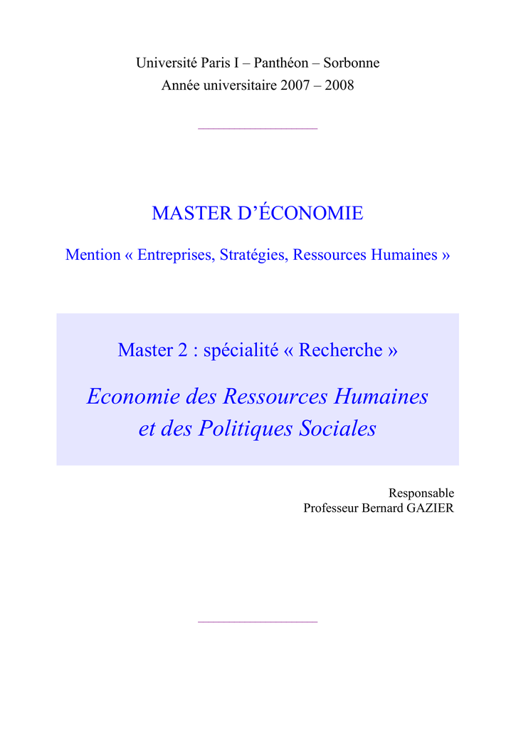 « Economie des Ressources Humaines et des Politiques Sociales » (ERHPS). L’intérêt
