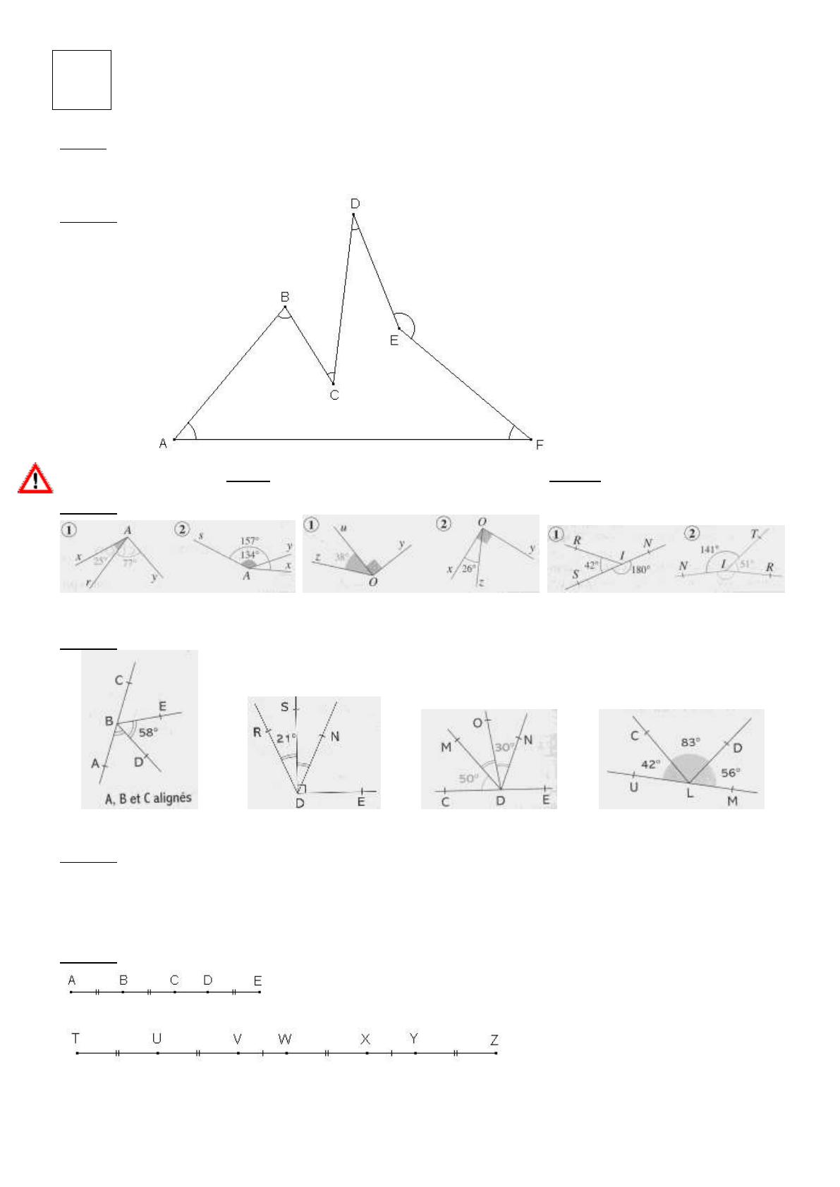 Angle (Winkel) ; notation : 3 points avec chapeau, sommet de l’angle au milieu ; exemple : Tracer un angle