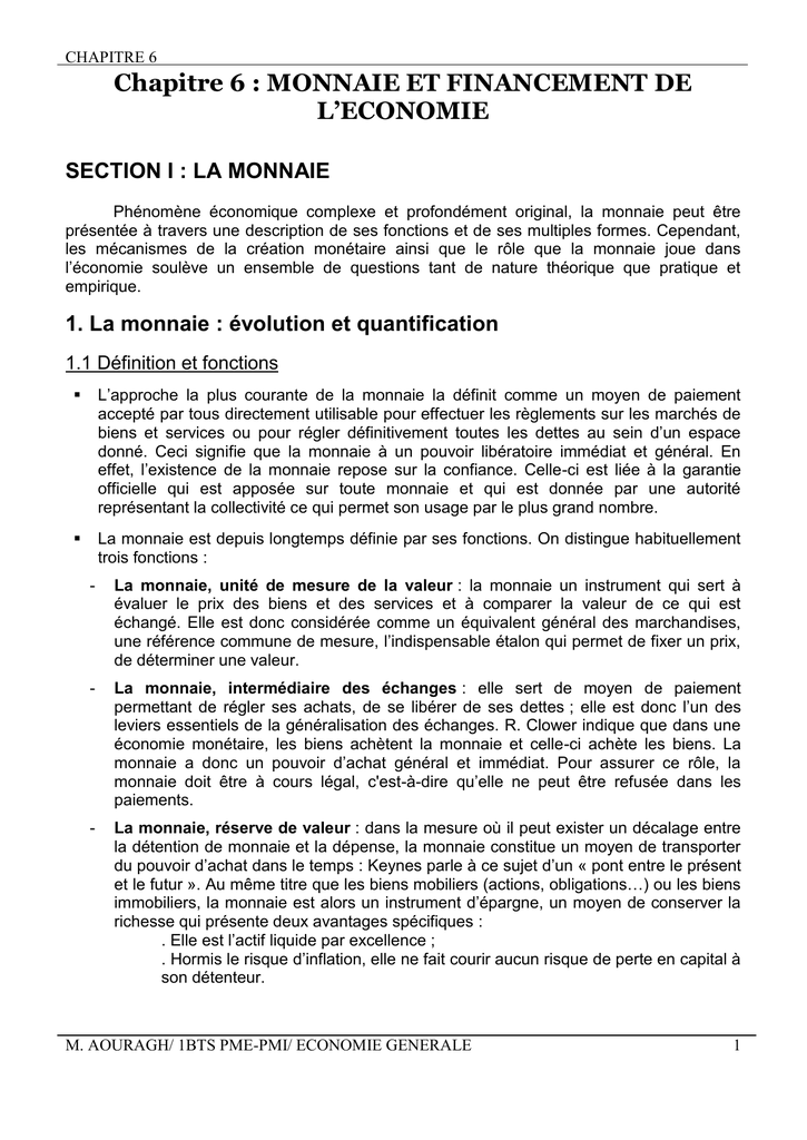 M. AOURAGH/ 1BTS PME-PMI/ ECONOMIE GENERALE