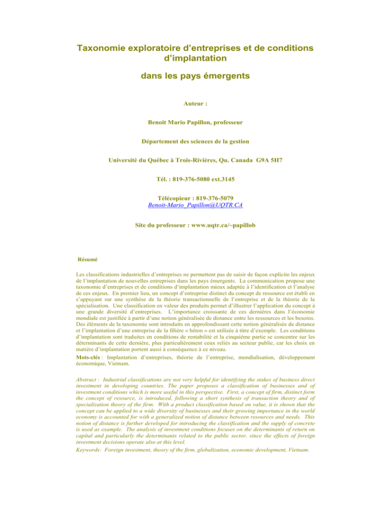 de transaction, l’intégration verticale et la sous-traitance ou l’impartition, la motivation et
