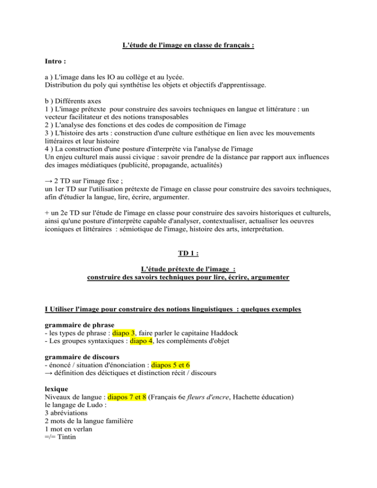 II Utiliser l'image pour construire des notions de techniques littéraires : quelques