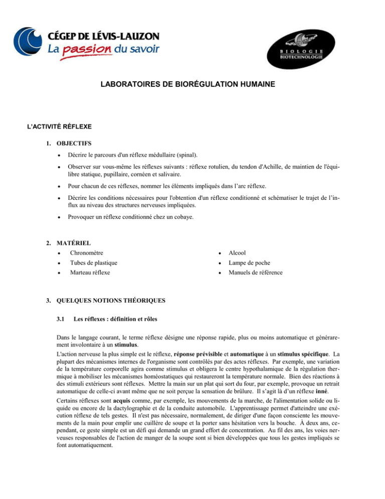 ● Observer sur vous-même les réflexes suivants : réflexe rotulien, du tendon d'Achille, de maintien de l'équi-