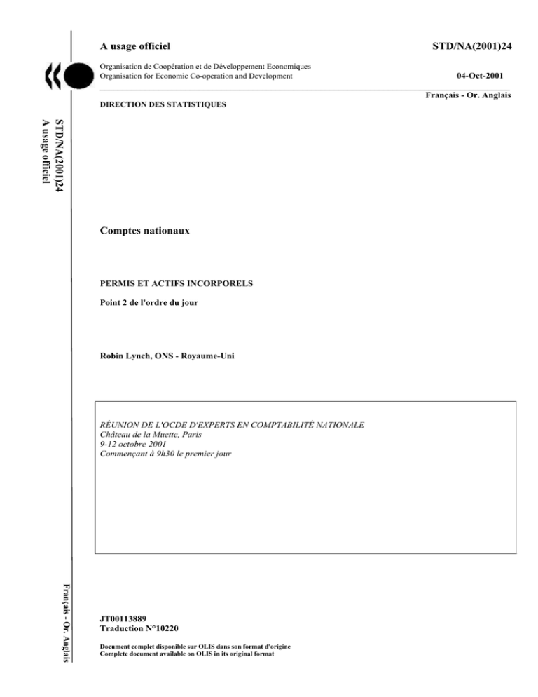 d’un original est comptabilisée dans la formation brute de capital fixe. Notons que le droit d’auteur