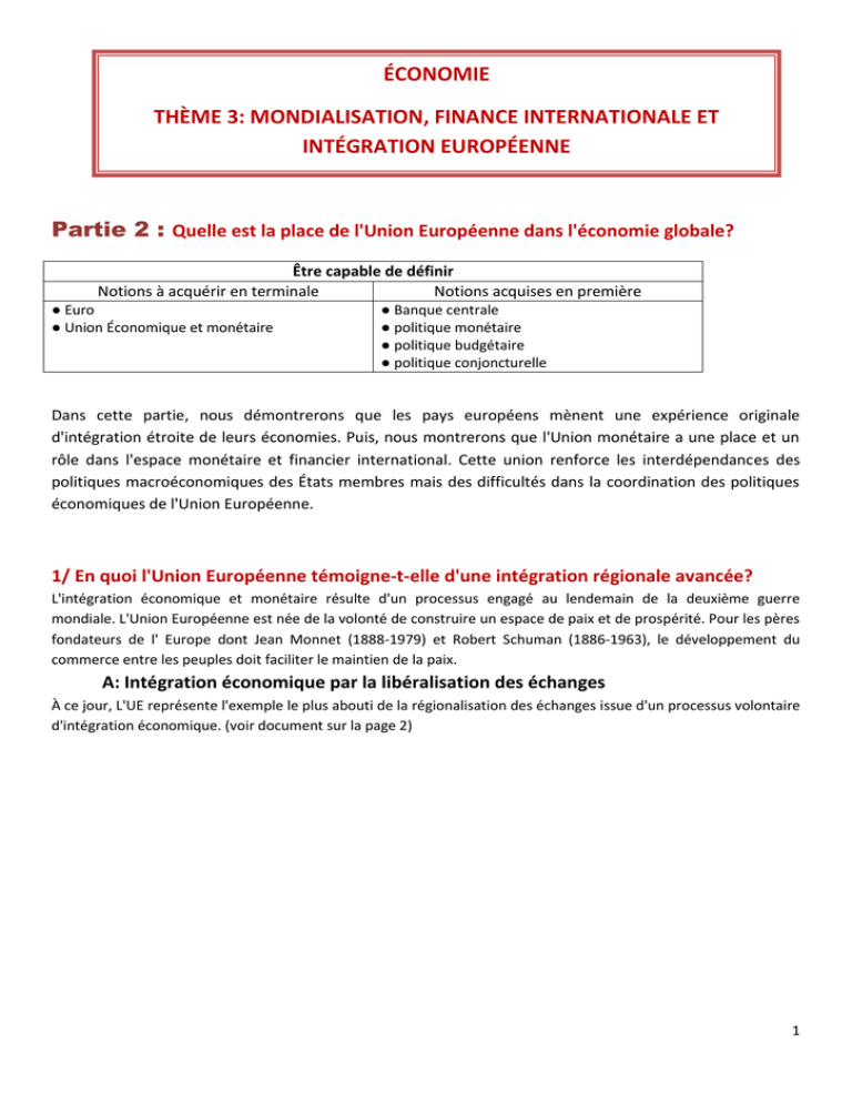 L'intégration européenne renforce le poids de la zone dans l'économie mondiale.