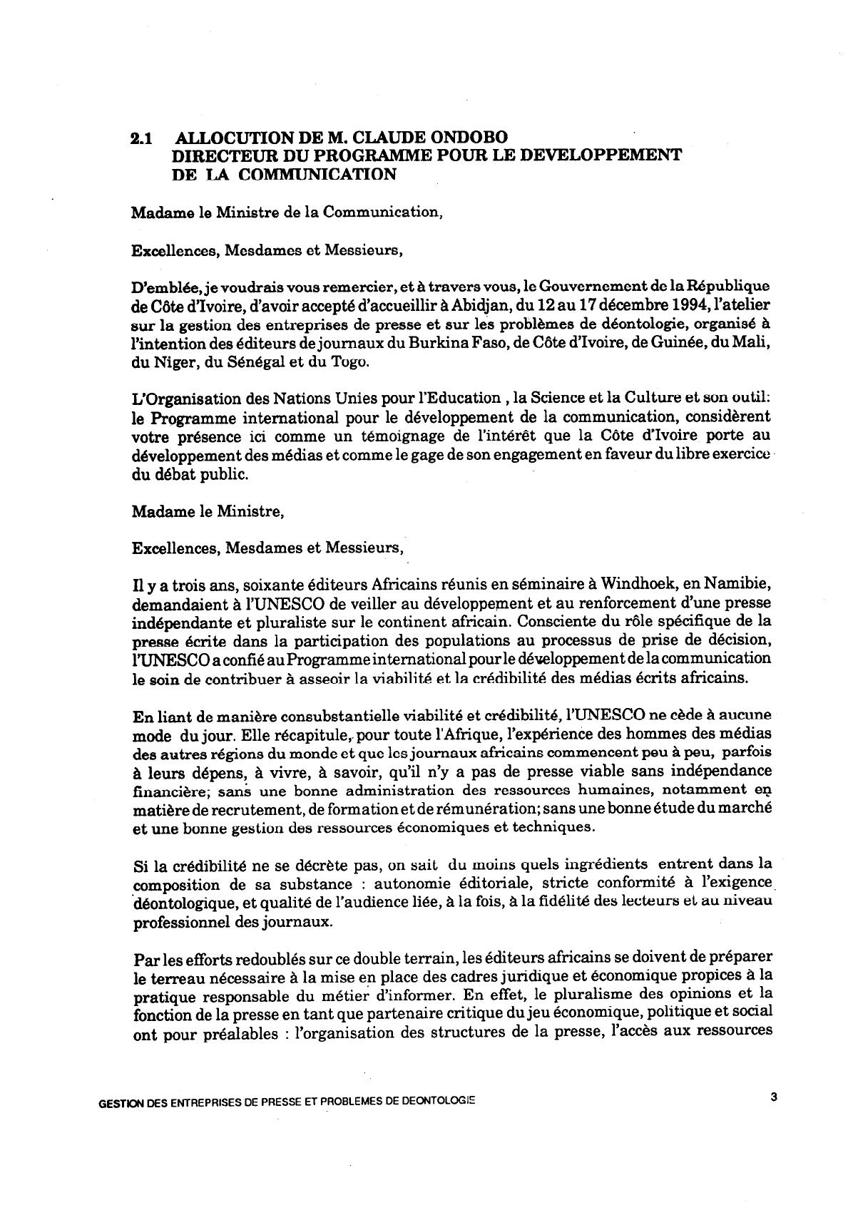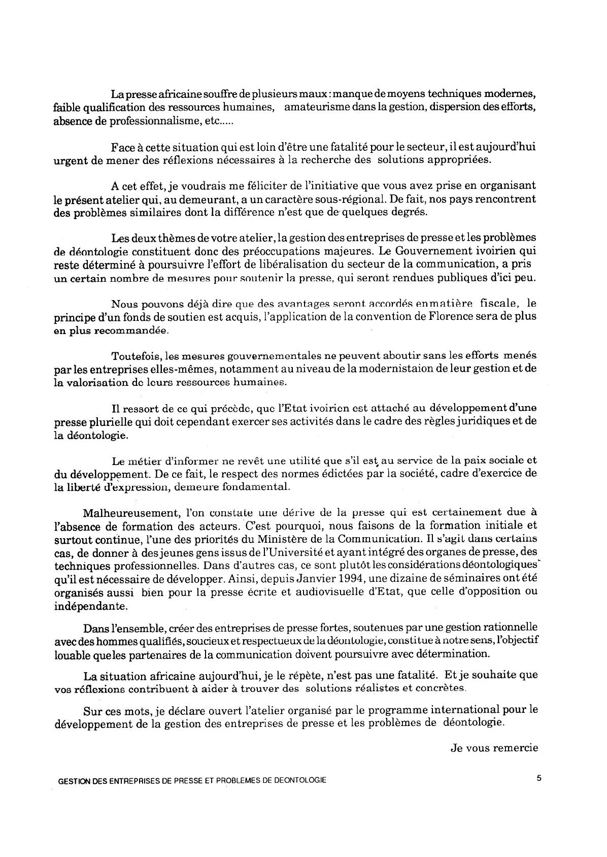 GESTION DES ENTREPRISES DE PRESSE ET PROBLEMES DE DEONTOLOGIE 5