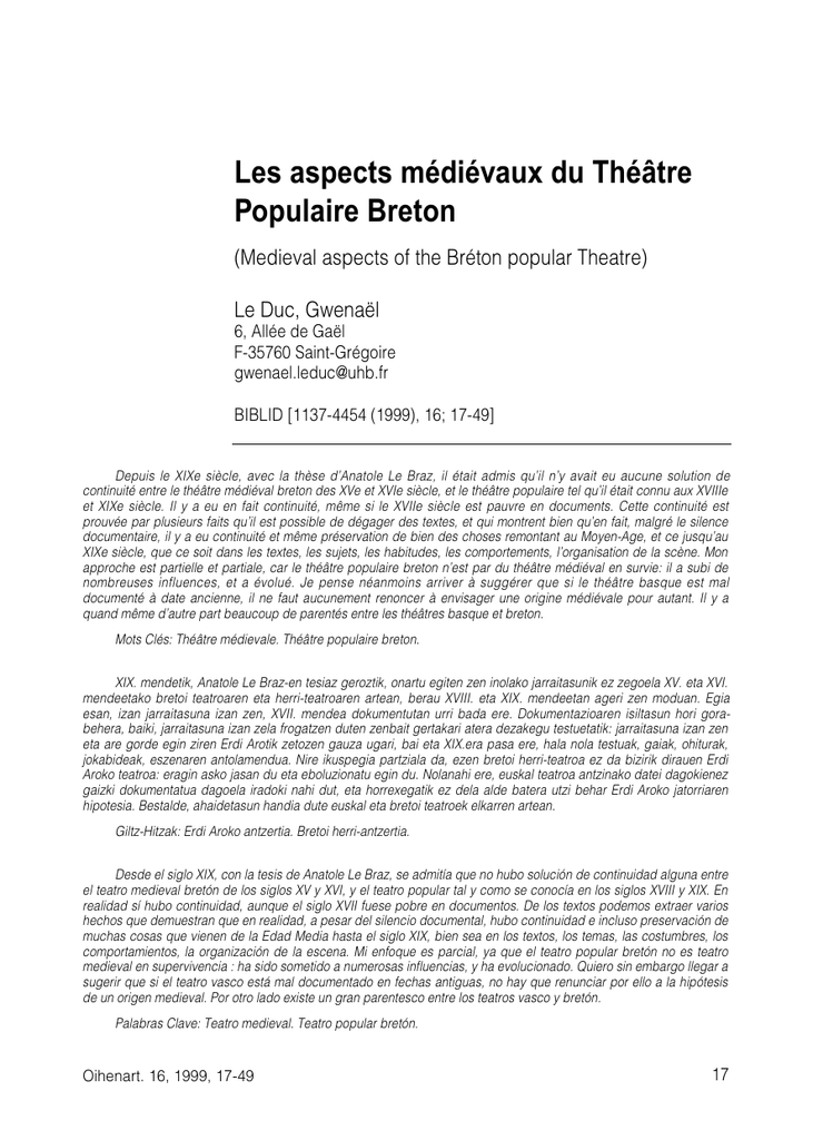 trise, Rennes, Section de breton et Celtique, 1994. Nous n’avons plus du texte que la copie exécutée en 1864 par