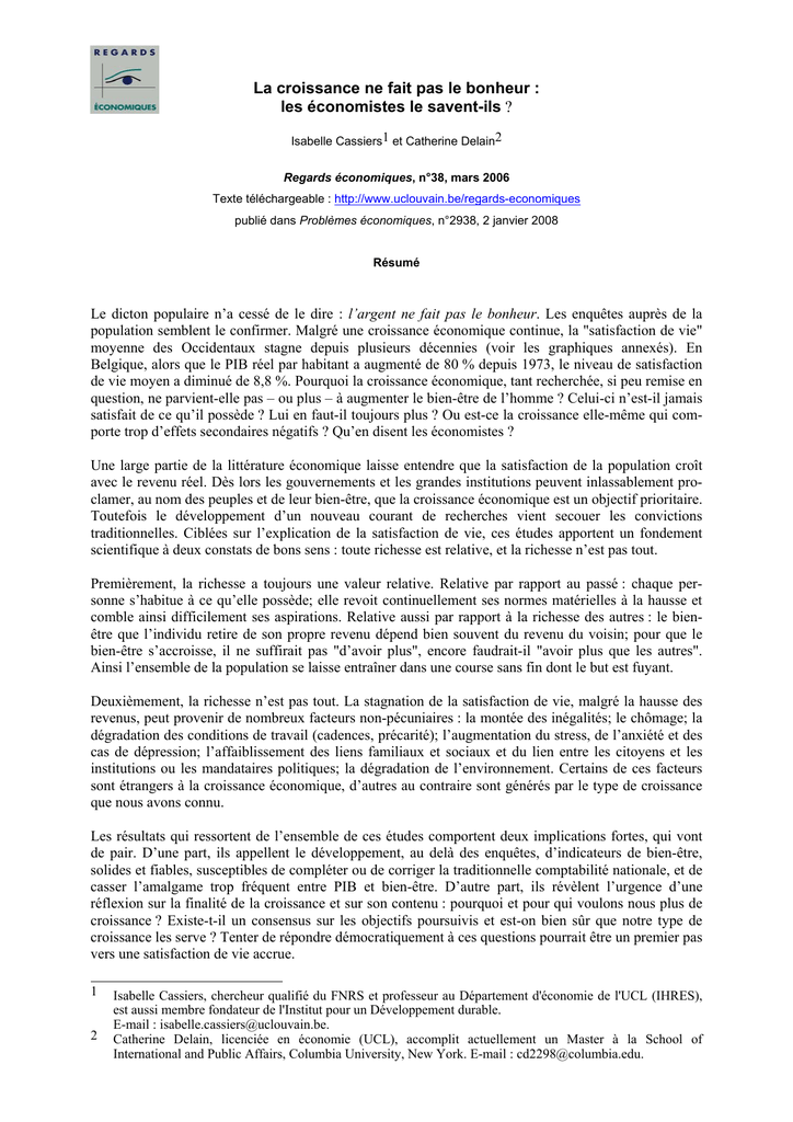 Texte téléchargeable : http://www.uclouvain.be/regards-economiques