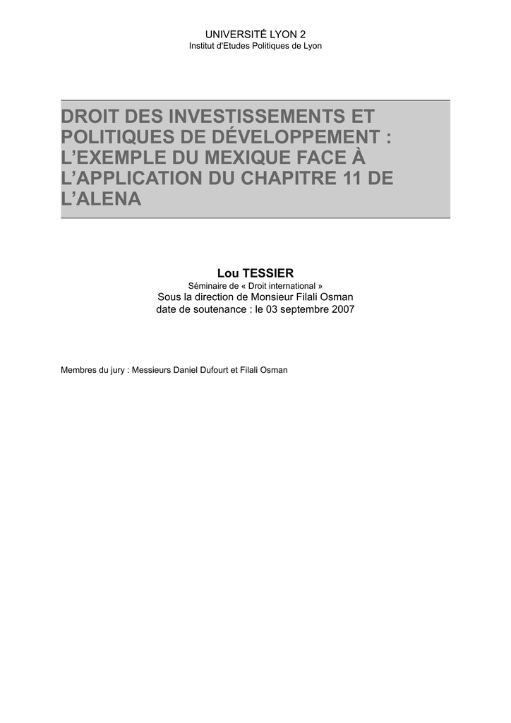 économiques. L’IDE représente « un type d’investissement qui permet à l’investisseur