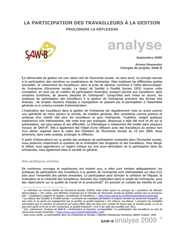 gestion que l’accès à l’assemblée générale. Il importe peu que le dispositif de participation soit formel