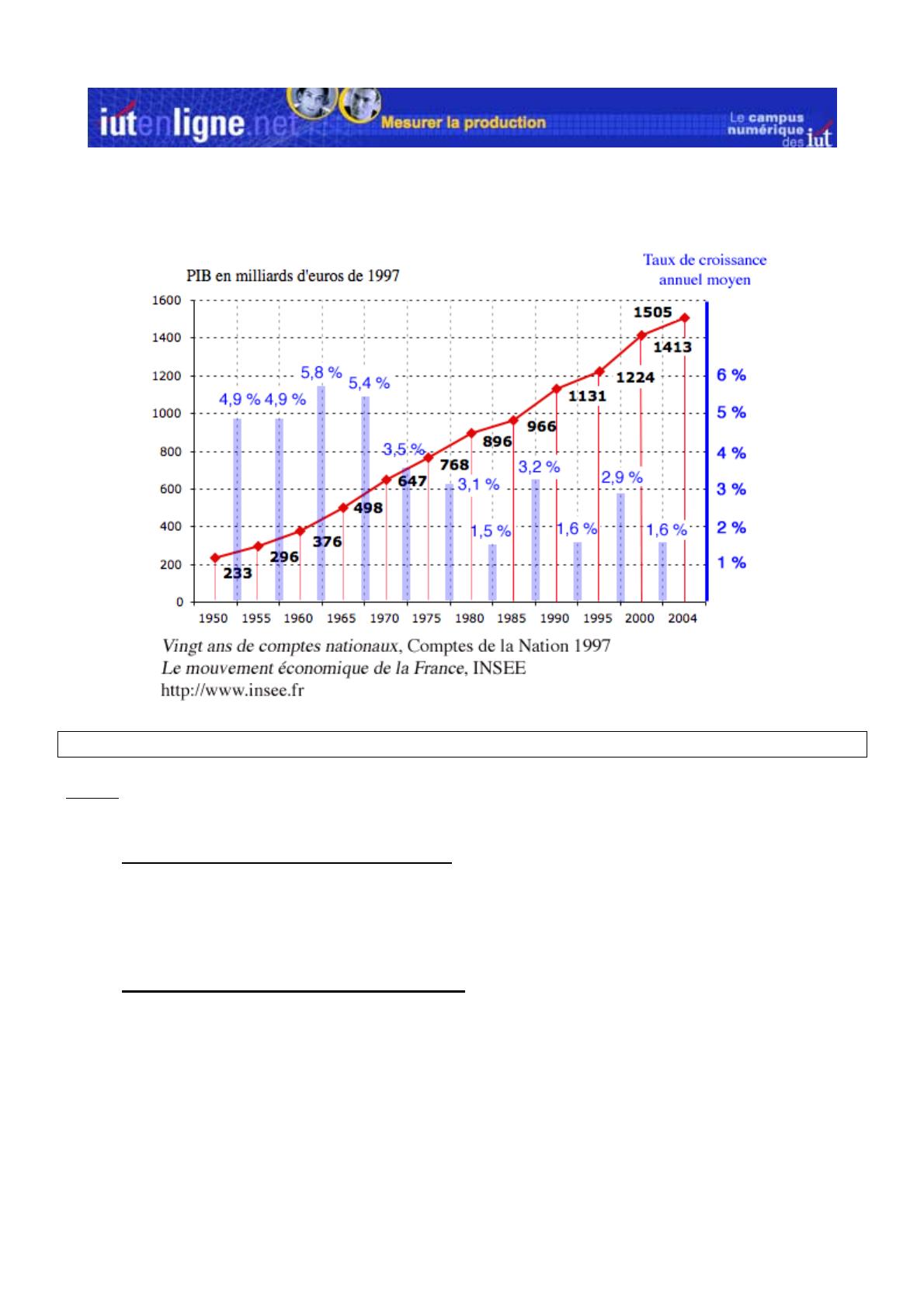 i) Calculez le TCAM du PIB entre 1950 et 2000 puis entre 1950 et 1975 et enfin entre 1975 et 2000.