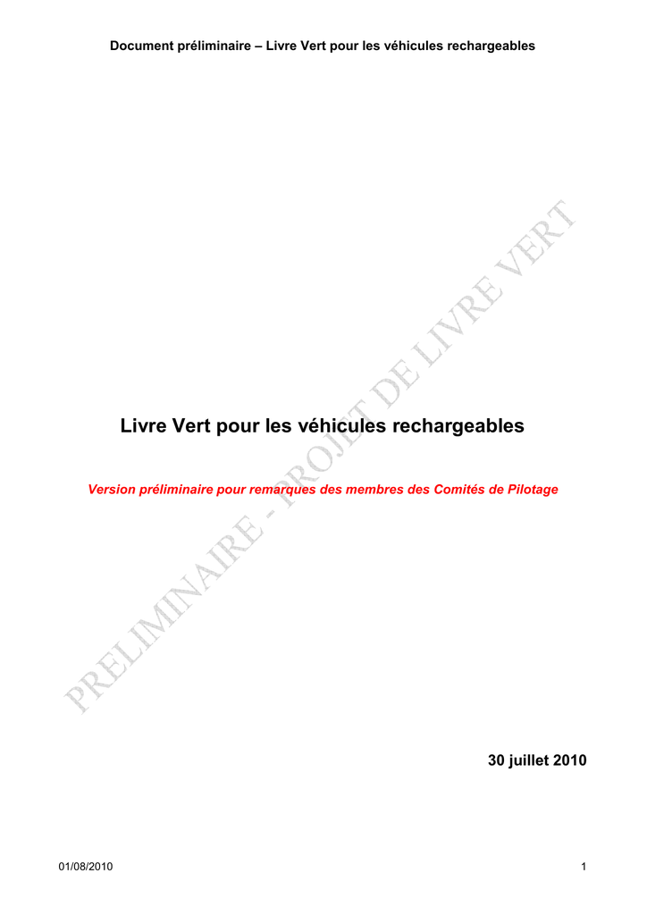 Document préliminaire – Livre Vert pour les véhicules rechargeables
