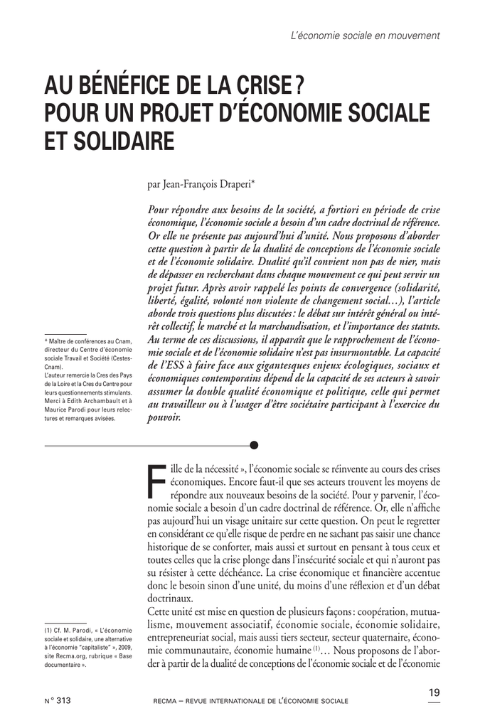 N° 313 RECMA – REVUE INTERNATIONALE DE L’ÉCONOMIE SOCIALE