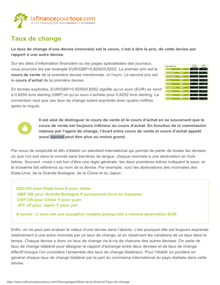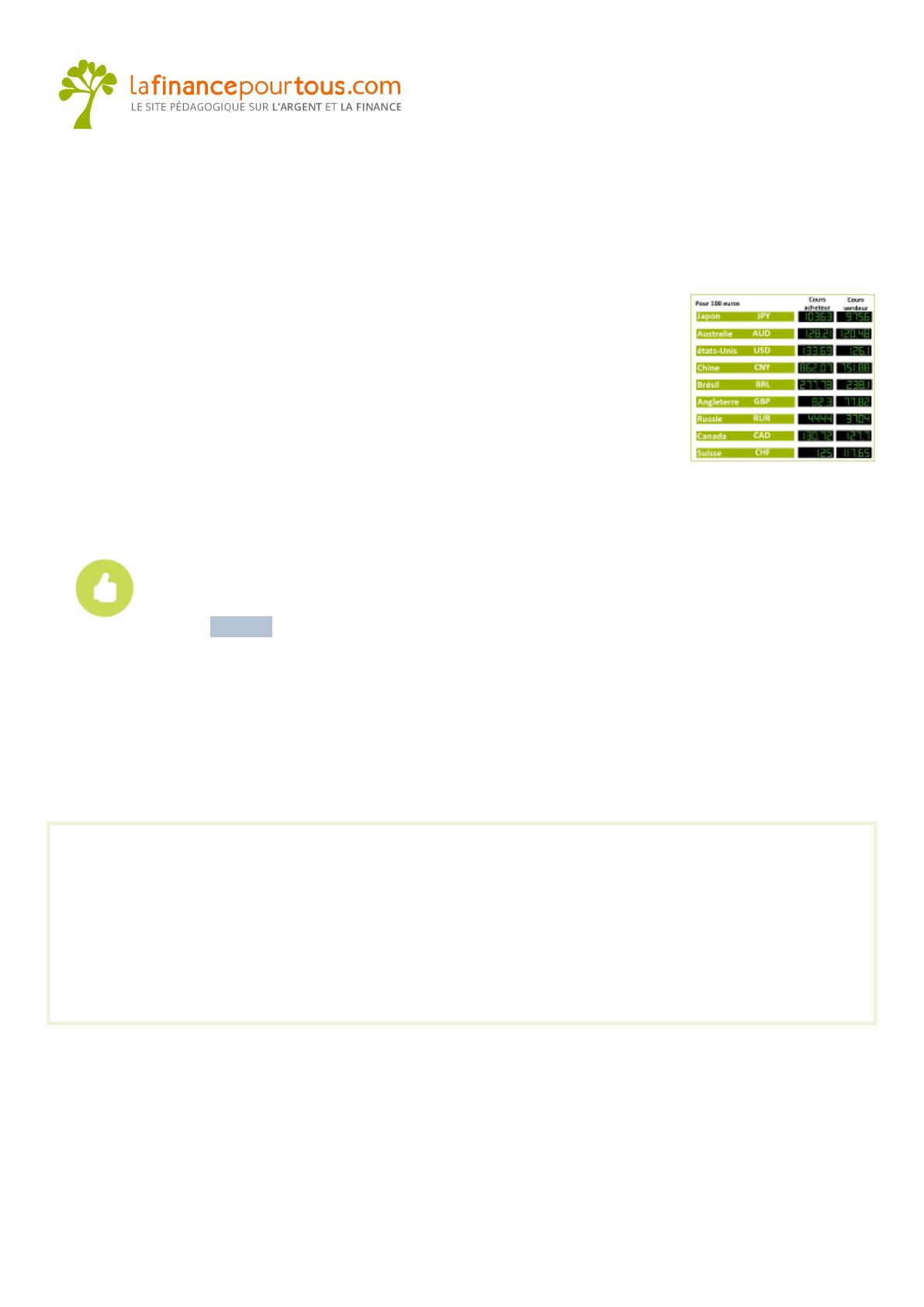 Les taux de change des devises sont fixés sur le . Chaque pays ou zone monétairemarché des changes