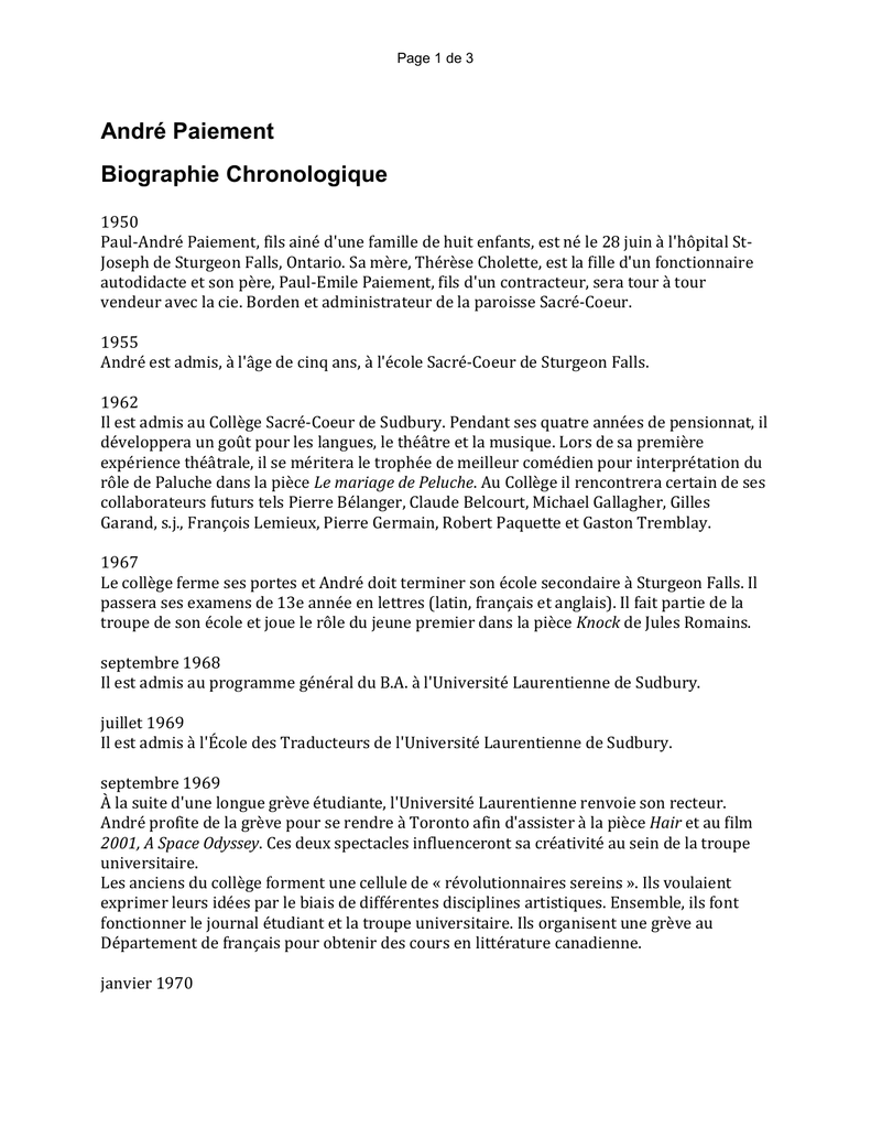 Biographie Chronologique