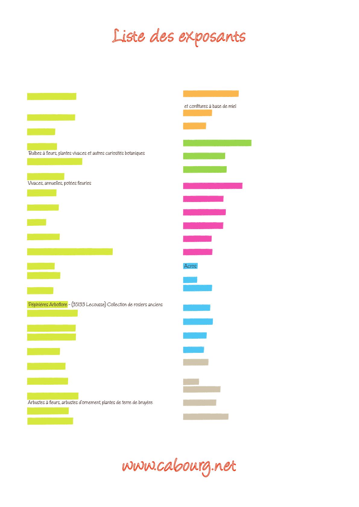 Liste non exhaustive. D’autres stands sont à découvrir sur place. Renseignements sur les stands et modalités d’exposition au 02 31 91 21 55.