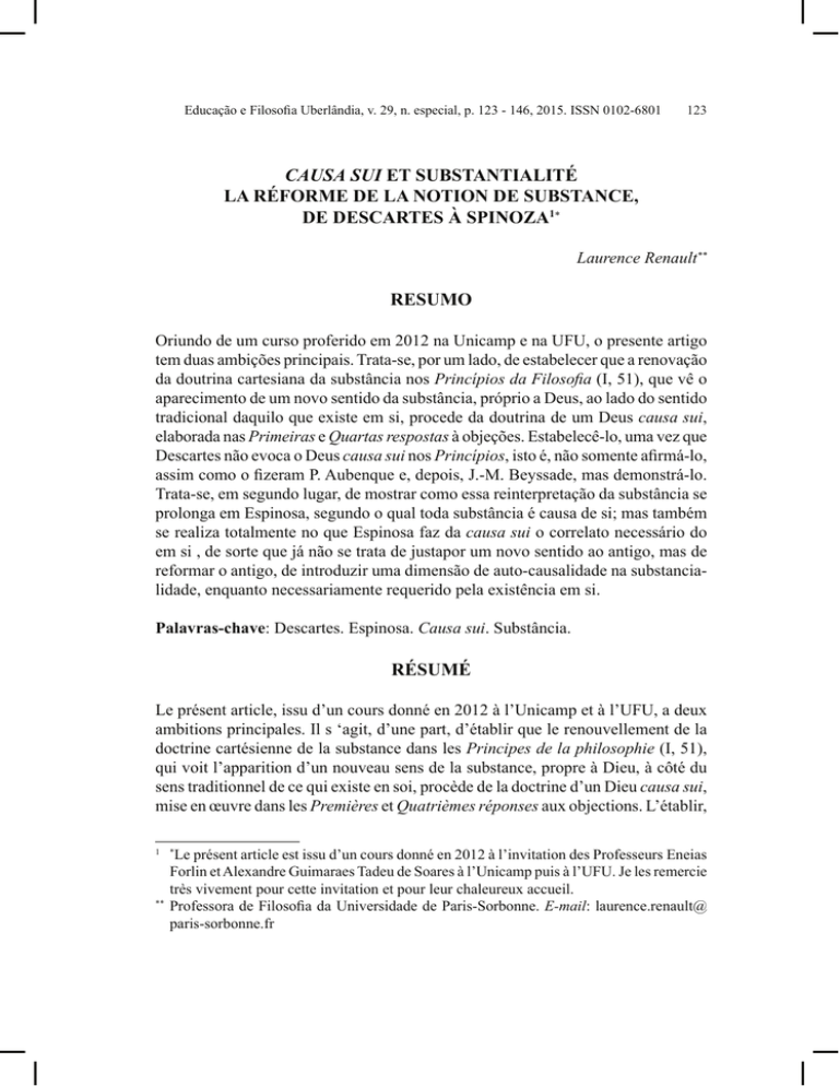 Mots-clés: Descartes. Spinoza. Causa sui. Substance.