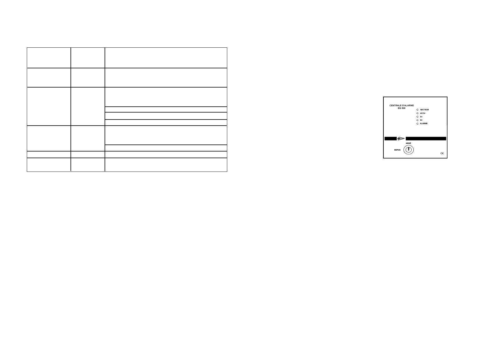• Pour des raisons de sécurité et de conformité (CE), la centrale d’alarme EG 500 ne doit être ni démontée, nii
