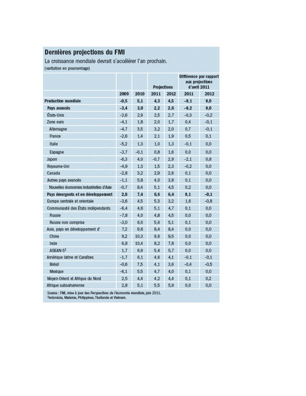 sera plus faible en 2011 que prévu en avril. Cela s’explique par une hausse des recettes, en