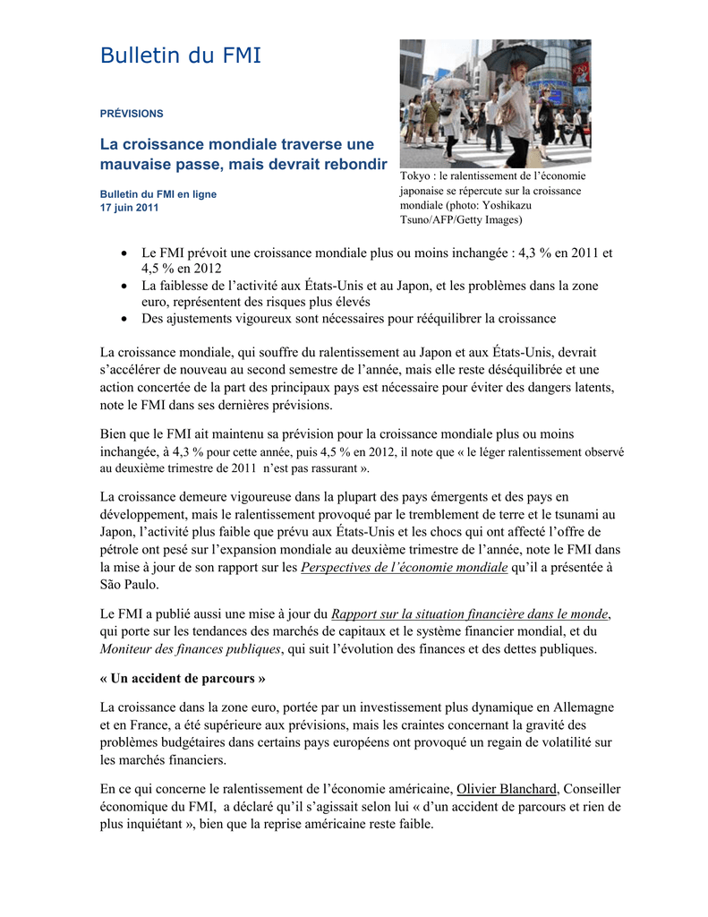 Selon le FMI, étant donné les tensions récentes sur les marchés financiers, les dirigeants