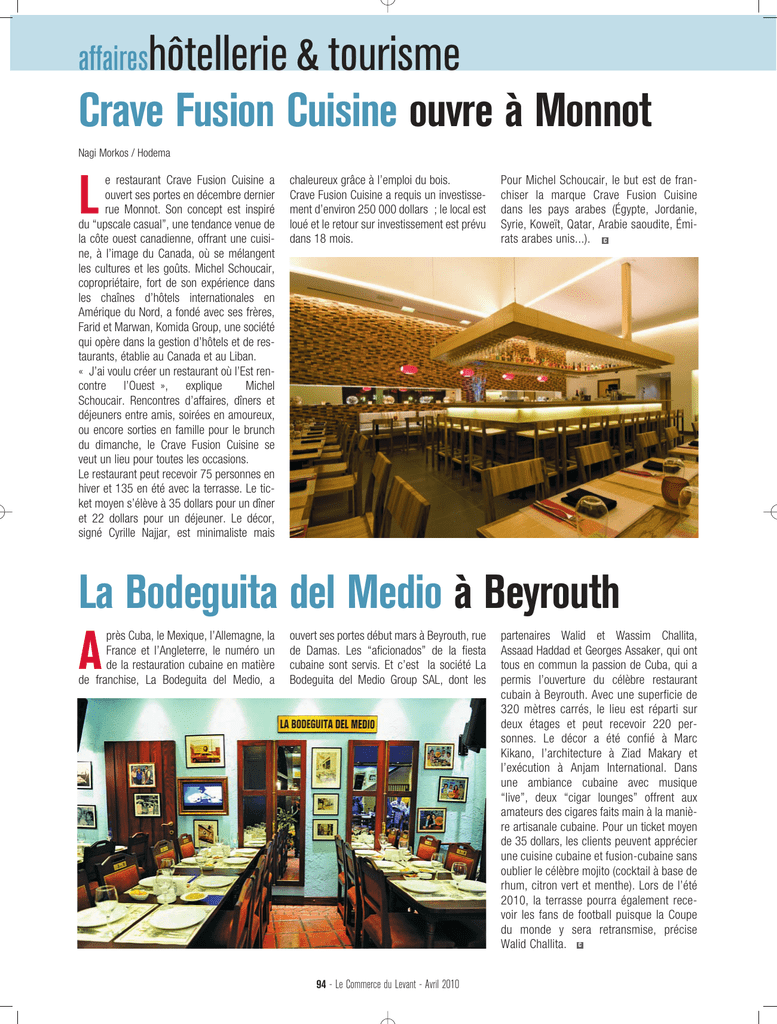 vrir un restaurant », déclare Mohamad