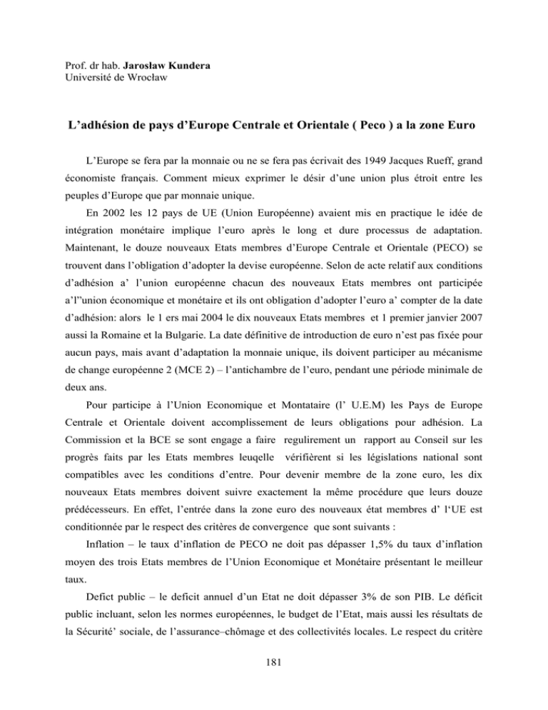 2 C. Mathieu, H. Sterdyniak, Les Peco sont-ils les bienvenus dans la zone euro? Problèmes économique,