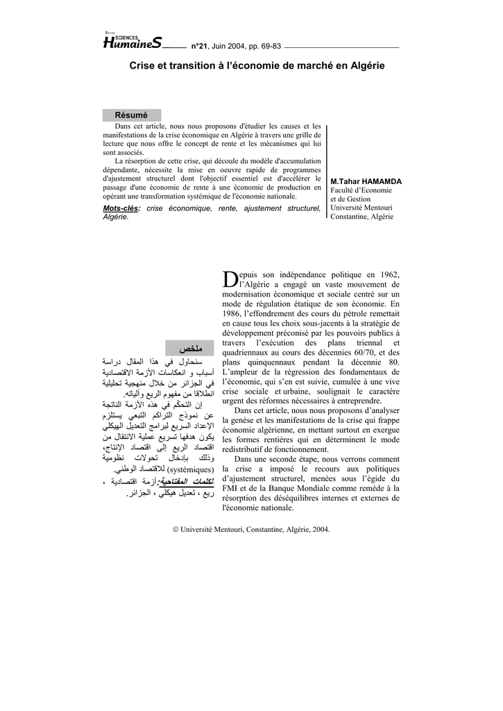 1.4. Crise et "rentisation" de l'économie algérienne