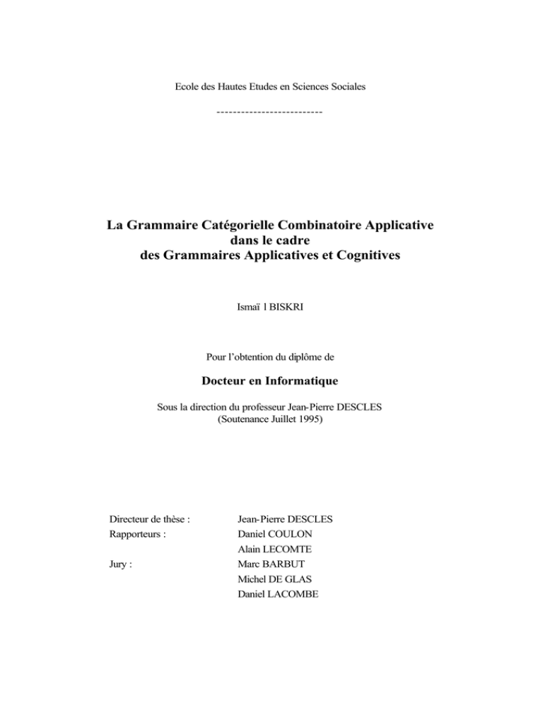 Le Professeur Jean-Pierre DESCLES pour avoir accepté de diriger mes travaux, pour son soutien,