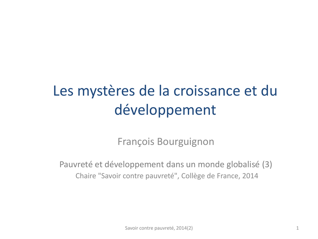 •Déterminants de la croissance: "mystère" ou complexité ?