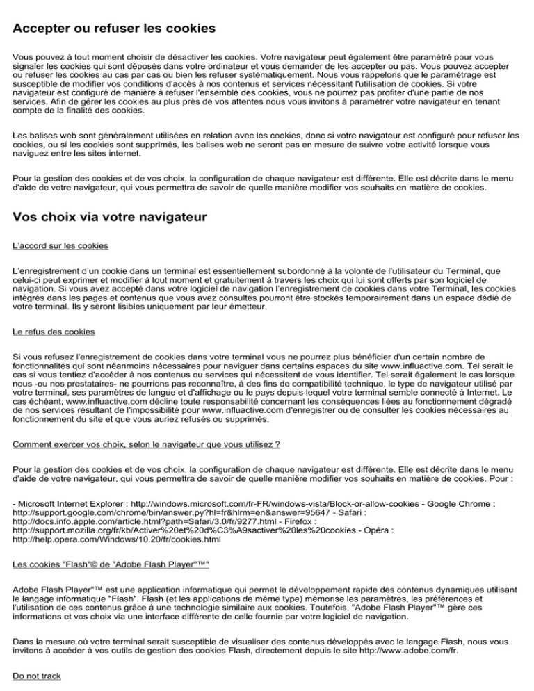 invitons à accéder à vos outils de gestion des cookies Flash, directement depuis le site http://www.adobe.com/fr.