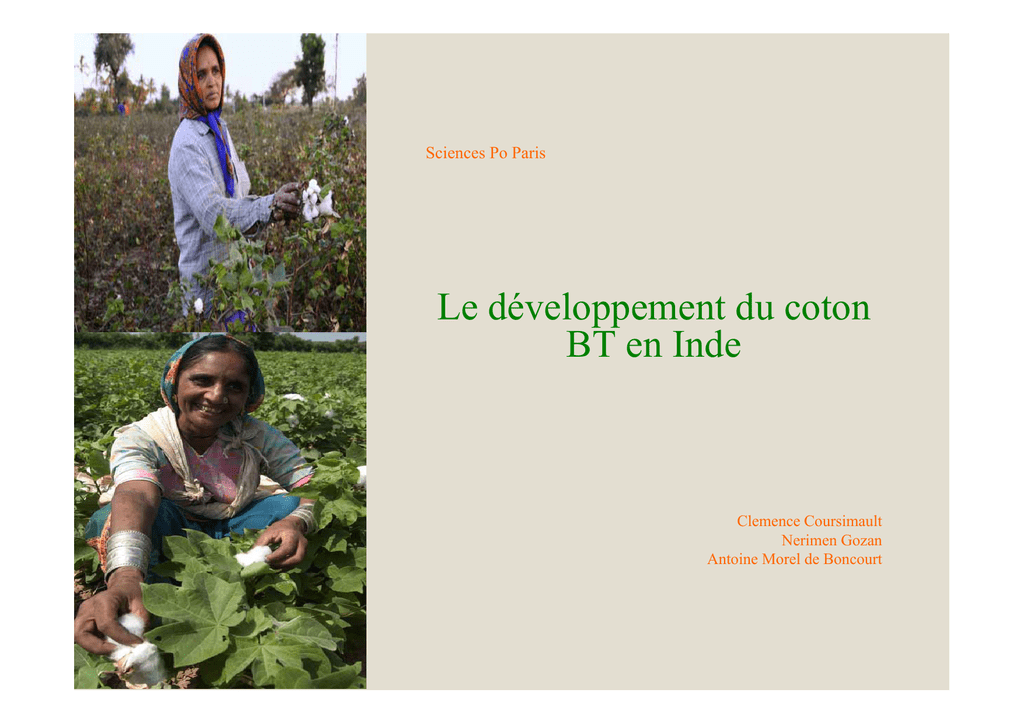 depuis 2002 du coton BT (génétiquement modifié, afin de