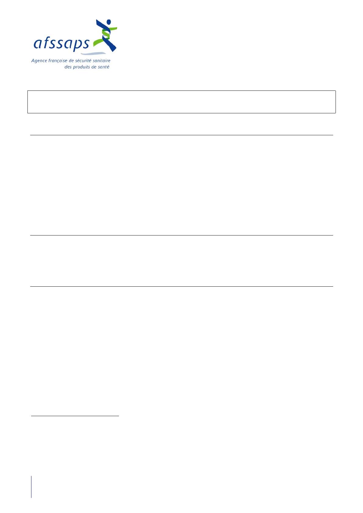 143/147, bd Anatole France - F-93285 Saint-Denis cedex - tél. +33 (0)1 55 87 30 00 - www.afssaps.sante.fr