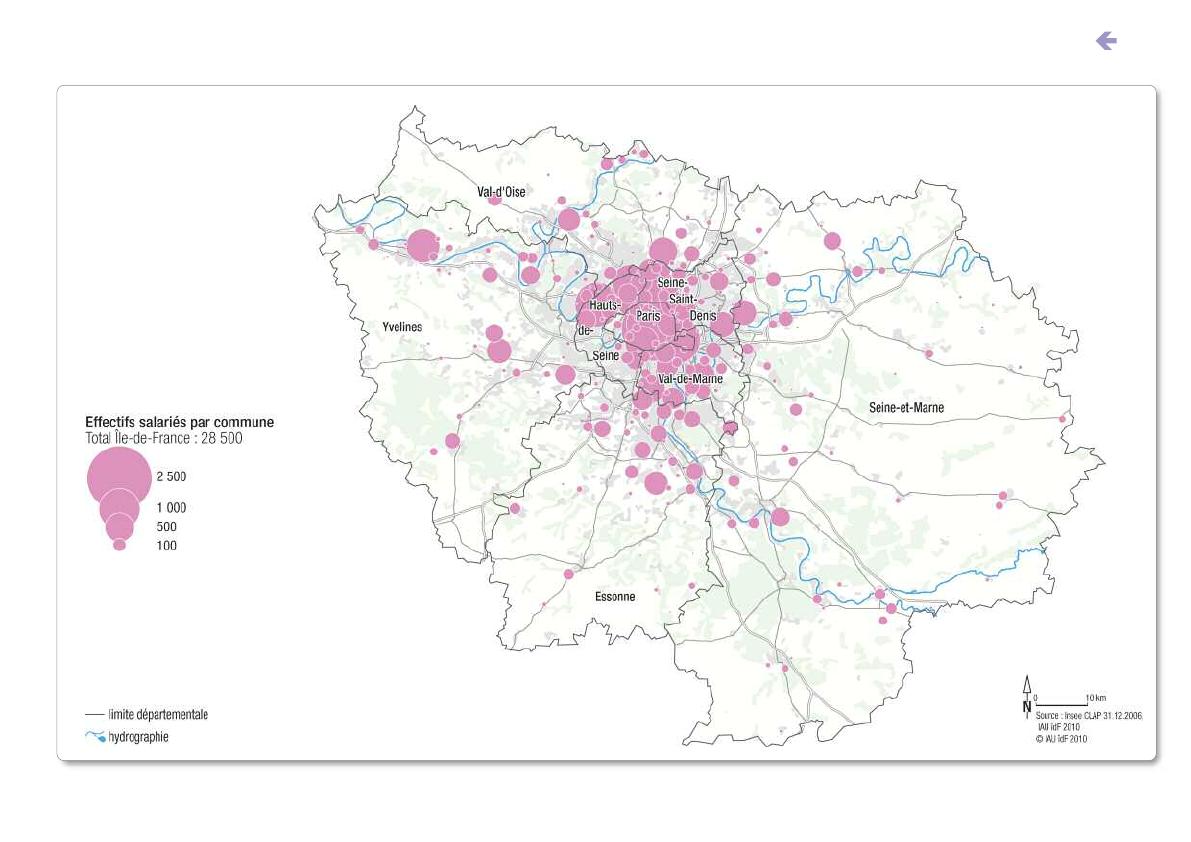 Source: IAU Île-de-France, Dreif, Apur, Insee, Géographie de l’emploi 2006 en Île-de-France, 2009.